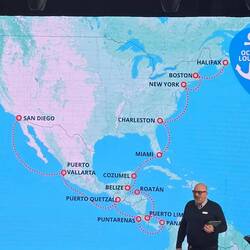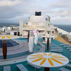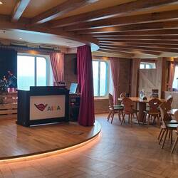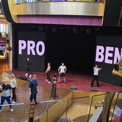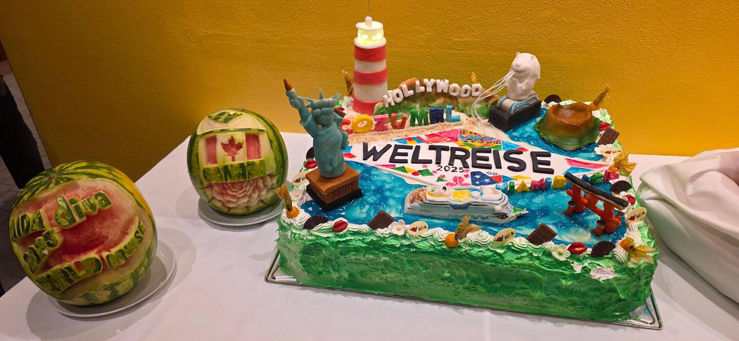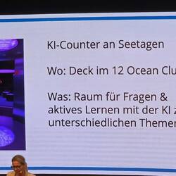 Dann gab es einen Vortrag, in 133 Tagen um die Welt mit KI. Wir wussten nicht so genau, was das bedeuten sollte. Es war eine zertifizierte KI-Dozentin, die uns in den ersten 10 Tagen der Weltreise ChatGPT näher bringen will. Am Nachmittag haben wir dann noch etwas das Schiff besichtigt. Abends hat sich dann das Showteam vorgestellt und jetzt läuft gerade die Prime Time, die kann man sich auch gut am Fernseher ansehen, wenn das Theatrium zu voll ist.