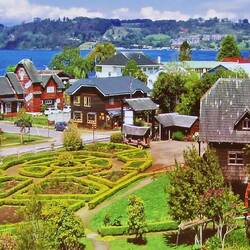 Am Ende noch ein kurzer Aufenthalt in Puerto Varas, auch Rosenstadt genannt, sehr schön am See gelegen mit dem Blick auf den Vulkan.