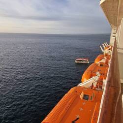 Es ging mit den Tenderbooten zurück zum Schiff und mit ziemlich verspäteter Abfahrt los.