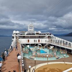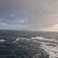 Haben schon eine Windwarnung bekommen, ab 22 Uhr dürfen wir uns nicht mehr auf den offenen Decks aufhalten. Wellen bis 6 m hoch, mal sehen, was wir davon auf dem Schiff merken.