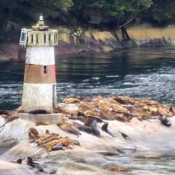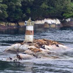 Nur von ein paar Lachsfarmen, Leuchttürmen und Seelöwen unterbrochen.
