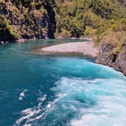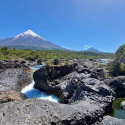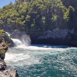 Danach zum Petrohue-Wasserfall, der zwar jetzt im Sommer nicht soviel Wasser führt, aber immer noch sehr beeindruckend ist, durch seinen Fluss durch Lavafelder.