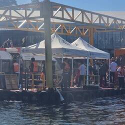 Gab wohl Probleme mit der Gangway, wird sich alles verzögern, aber Shuttlebusse stehen schon bereit.