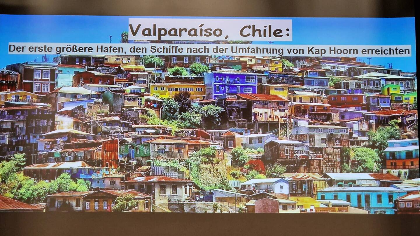 Jetzt sind wir schon im Pazifischen bzw. Stillen Ozean. Magellan hat ihn ja so benannt, weil das Wasser dort so ruhig war.