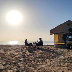 Wir haben auf dem Platz auch Willeke und Ton wieder getroffen. Und weil es in Atar eigentlich nichts besonderes zu sehen gibt, sind wir mit den beiden noch einmal in die Oase gefahren. War ein sehr schöner Tag und Abend mit den beiden!