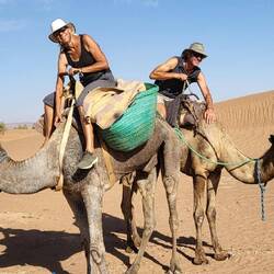 Zusammen mit Lynda und Nigel haben wir die Durchquerung der Wüste Erg Chigaga gewagt. 160 km ging's über Sand- und Schotterpisten an weiten Ebenen und hohen Dünen vorbei.