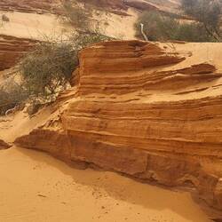 Wüste heißt hier Sanddünen, Sandsteppe, Geröll- und Steine, und viel flache Weite.
