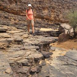 Heute haben wir eine Offroad Tour in die Jaafar-Schlucht gemacht. Bzw. wollten in die Schlucht fahren. Nach ca. 15 km perfekter Schotterpiste ging es dann durch ein ausgetrocknetes Flussbett.