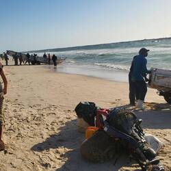 Aber vorher sind wir noch an die äußerste Südspitze der Halbinsel von Nouadhibou gefahren: Cap Blanche. Ein unberührter Flecken Erde, nur ein kleiner Militärposten und ein paar Fischer sind dort zu sehen.