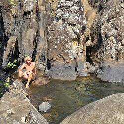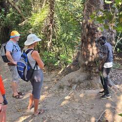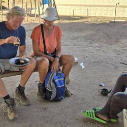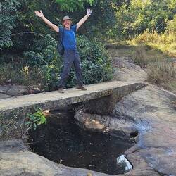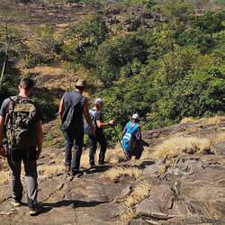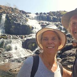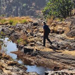 Wir waren 4 Tage bei Hassan. Heute standen der Volture's Rock-Trail und der Hyena's Rock-Trail auf dem Programm. Am Wasserfall konnten wir direkt vor der Kante in einem Naturpool baden. Schon ein wenig aufregend!