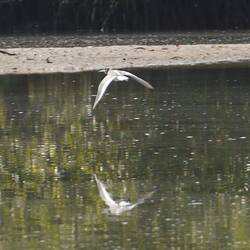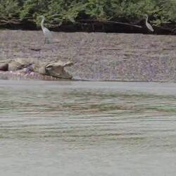 Die Hippos sieht man i.d.R. nur bei low tide (Ebbe). Bei Hochwasser stehen oder schwimmen sie unter den Ästen der Bäume, und man kann sie kaum sehen. Und Ebbe ist heute halt vormittags.