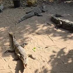 In Bakau gibt es einen Krokodil-Park mit freilaufenden Krokodilen. Ein absolutes MUSS, wenn man in Gambia ist. Die Krokos werden 2x täglich mit Fisch gefüttert und haben deshalb keinen Appetit auf Menschen. So sagt man... Vielleicht sind sie ja auch gedopt 🤷