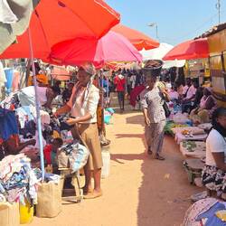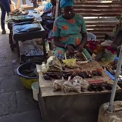 Anschließend ging es noch in das Gewusel des Serekunda-Markts. Das Eingangstor wird witzigerweise eingesäumt von einer großen Maggi-Werbung. Drinnen geht es richtig geschäftig und wuselig durch die engen Gassen. Wir wurden aber kaum angesprochen oder gar belästigt, vermutlich, weil wir einen Guide dabei hatten.