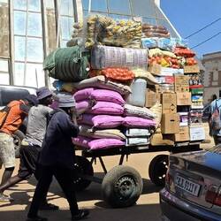 Wir haben heute Banjul besucht und wollten mal die Öffis nutzen, was in Gambia heißt: Taxi fahren.
