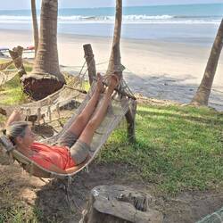 Von der Lodge aus wandern wir (ohne Chris) am Strand entlang bis zum Nordzipfel der Insel und sind dann kurzzeitig im Senegal. Ohne Passkontrolle, versteht sich...