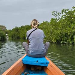 Zusammen mit Willeke und Ton haben wir den Makasutu Park in Birkama besichtigt. Er liegt direkt am Gambia River und besteht zum großen Teil aus Feuchtgebieten, die eine direkte Verbindung zum Meer haben, und daher auch Ebbe und Flut haben. Und das Wasser ist salzig. Daher gibt es hier keine Flusspferde, aber sehr viele Vögel.