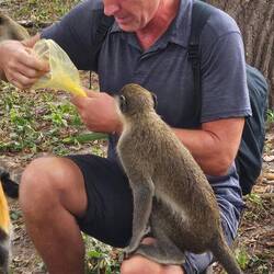 Den Ausflug haben wir mit Omar gemacht, dem Guide und Freund von Willeke und Ton. Für den Tagespreis von 75 Euro haben wir dann auch noch den Abuko-Park besichtigt, wo u.a. Hyänen gehalten werden.