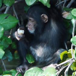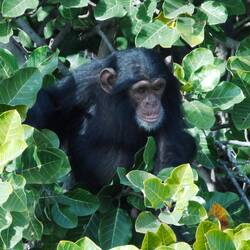 Und die Chimpansen sind nur nachmittags zu sehen. Vormittags halten sie sich im Innern der Insel auf zum Futter suchen.