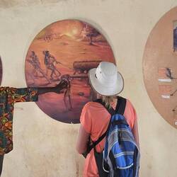 In einem Batik-Atelier haben wir gesehen, wie die bunten afrikanischen Tücher und echt schöne Bilder hergestellt werden. Die Farben werden z.T. selbst hergestellt, z.B. das Indigo-Blau aus Mangrovenblättern.