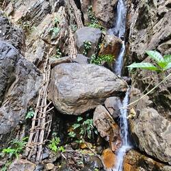 Und dann fragten wir uns, wie wir denn die Steilwand wieder hoch kommen sollten. Die Antwort: es gibt eine Schneise, besser gesagt eine Spalte, in der Felswand. Teilweise nur 5 m breit. Und weil die so steil ist, sind viele Stellen mit selbstgebastelten Leitern versehen.