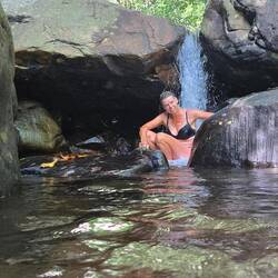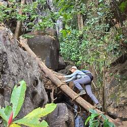 Zwischen Felsen und Lianen klettern, unter einem Wasserfall baden, Höhlen erkunden, am Abgrund stehen und 80 m in die Tiefe schauen... das waren die Highlights der heutigen Wanderung.