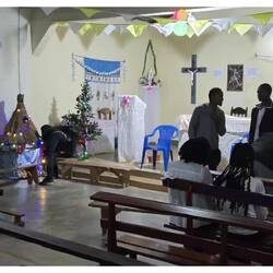 Als wir dann später zur Kirche kamen was stand da neben der Krippe? Genau: der vermisste Baum. Scheint in Dalaba wohl nur einen einzigen Weihnachtsbaum zu geben...😀🎄