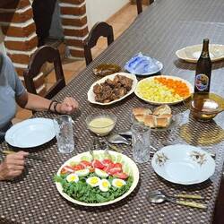 Das Essen war einzigartig für diese Gegend: am ersten Abend gab es Salzkartoffeln, Möhren und Hühnchen, dazu einen leckeren gemischten Salat. Sowas hatten wir ja schon lange nicht mehr. Da merkt man doch den Einfluss des Abendlandes...