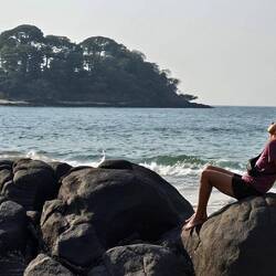 Am Strand stellte sich heraus, dass unser Käpt'n nur ein sehr schmales kleines Boot hatte. Naja, wir zwei würden schon noch reinpassen. War aber eine sehr wackelige Angelegenheit, und nicht sehr vertrauenseinflößend.