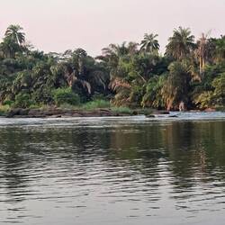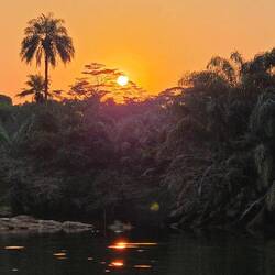 Am Abend haben wir eine Bootstour mit einem Einbaum gemacht. Da wir ja schon einmal mit sowas gekentert sind, waren wir etwas skeptisch und sehr angespannt. Ist aber alles gut gegangen, auch in den Stromschnellen.