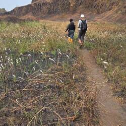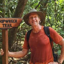 "Weg" ist auch schon fast übertrieben. Trampelpfad mit Hindernissen passt besser. Aber wunderschön, so durch den mal dichten, mal offenen Urwald zu laufen. Manches Mal hätten wir uns eine Machete gewünscht.