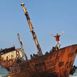 Unser erster Strandspaziergang führte uns im Süden zu einem Schiffswrack, das hier schon seit etlichen Jahren vor sich hinrostet. Etwa einen Kilometer weiter kamen wir zu einem Luxus Resort direkt am Strand. Eine Übernachtung kostet hier schlappe 360 US-Dollar. Allerdings waren keine Gäste anwesend, nur ein paar Mitarbeiter. Ein Bier für 3 $ haben wir uns dann aber doch noch gegönnt.