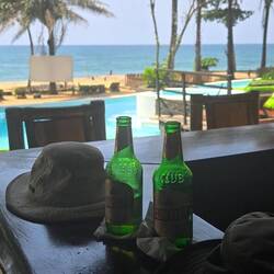 Die zwei Tage in Harbel waren auch wirklich nicht langweilig. Es gibt einen hervorragenden Supermarkt nach westlichem Standard, wo man einfach alles kaufen kann. Und in der eigentlichen Wohnstadt, in Cotton Tree, gibt es quasi eine Bar neben der nächsten. Dort haben wir das lokale Bier aus Monrovia verkostet, in 0,75 l-Flaschen 😁.