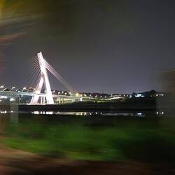 Es gab plötzlich eine Eisenbahnlinie, die nagelneu und sehr modern aussah. Mit einem Bahnübergang. Mit Schranken.