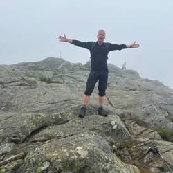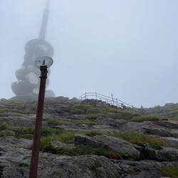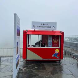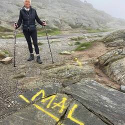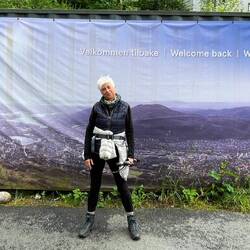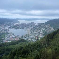 Kein Regen ist angesagt für heute in Bergen! Das gibt uns die Gelegenheit, den höchsten Berg der Umgebung zu erklimmen. Der Ulriken ist 643 m hoch, eine Sherpa-Treppe führt seit 2017 hinauf. Die wollen wir nehmen. Die Straßenbahn bringt uns an den Fuß des Berges. 1330 Stufen sollen es sein, wir haben sie nicht gezählt. Große Steinbrocken wurden in zweijähriger Arbeit von Sherpas aus Nepal zu einer langen Treppe aufgeschichtet und erleichtert seitdem den steilen Aufstieg zum Gipfel. Anstrengend ist es trotzdem. Auf halber Höhe umhüllt uns Nebel, die Sicht tendiert gegen Null. Schade. Viel los ist auf der Trappa trotzdem, manche joggen die Stufen sogar hoch, andere runter. Eine halbe Stunde soll der Aufstieg so nur dauern, wir brauchen doppelt so lang (vom Beginn der Treppe an gerechnet; bis dahin sind wir von der Straßenbahn- Station auch schon für die ersten zwei Kilometer eine knappe Stunde unterwegs). Am Gipfel auf 643 Höhenmetern ist es kalt, das Skyskraperen Restaurant dafür brechend voll. Die meisten der Gäste sind mit der Gondel hoch, um die 20m zum Restaurant zu überwinden und gleich ins Warme zu schlüpfen. Wir aber bleiben draußen, packen die mitgebrachten Brote aus und genießen den Blick in die Nebelsuppe. Es wäre wohl eine herrliche Aussicht gewesen - anderntags.