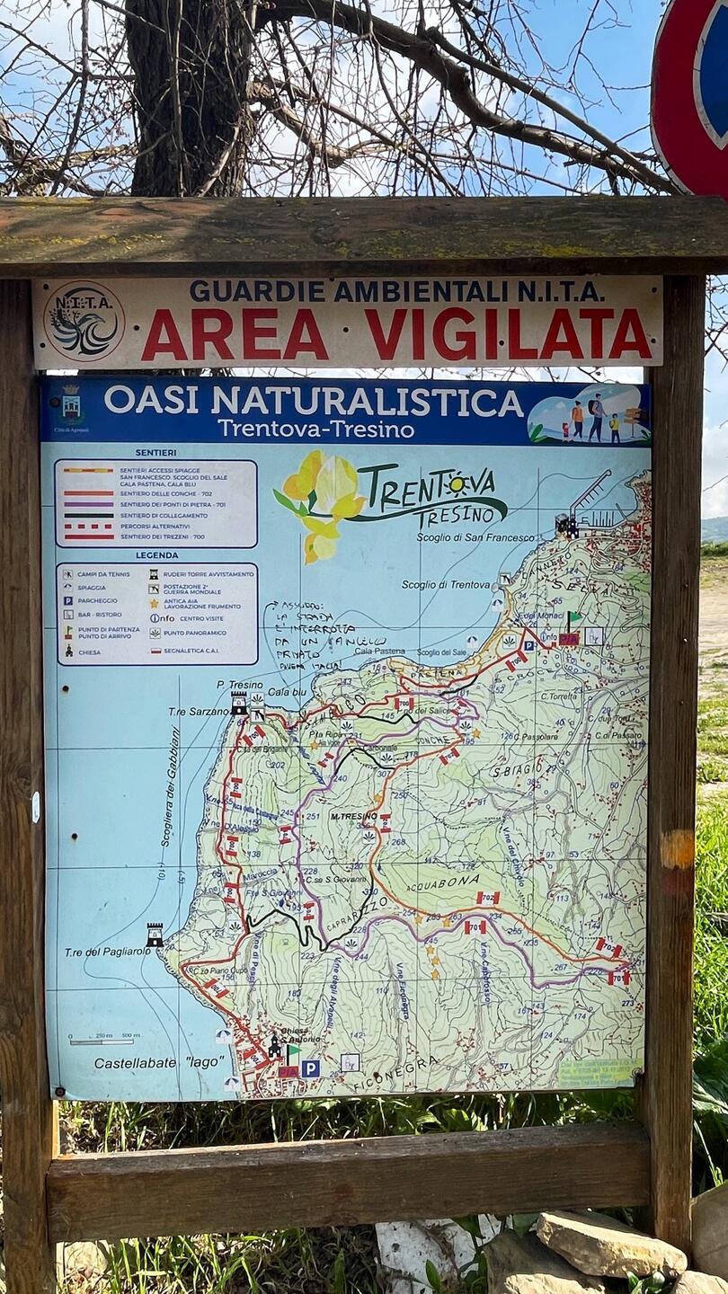 Die Bahn streikt. Auch hier in Italien. Oder besser, besonders hier. So komme ich heute nicht zu meinem Startpunkt. Macht aber nichts, rechte Lust auf die vielen Höhenmeter habe ich eh nicht. So bleibe ich heute in der Gegend, schaue mir die Altstadt von Agropoli an, das Castell, das restauriert wird (2€ nimmt man trotzdem), den Hafen. Dann geht’s etwas ziellos in ein Wandergebiet rund um den Mt. Tresino, Trentova-Tresino genannt. Auf den Berg zieht mich nichts, der Küstenweg ist auch ganz schön.