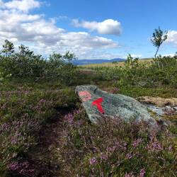Es soll - wie geplant - erst den Skiberg von Storlien hinauf gehen, dann nach 5km über die Grenze nach Norwegen, wo ein Damm mich aufhalten könnte, falls er überspült ist. Wenn nicht, gehe ich - mal wieder auf dem E1 - weiter zur Angeltjønnhytta (https://ut.no/hytte/10483), der ersten von mehreren DNT-Hütten, für die ich mir vorab extra den passenden Schlüssel besorgte.