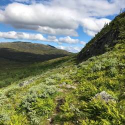 Es wird eine kleine, aber feine Tour (Komoot Link: https://www.komoot.de/tour/1247837458?ref=itd), die ich so schön gar nicht erwartet hatte. Planken überbrücken die feuchtesten Moorstellen, aber lange nicht alle. Das Wasser steht hoch, die Planken liegen teils unter Wasser - aber es geht. Die neuen Stiefel bleiben innen trocken. Ein kleines Abenteuer und ein gutes Gefühl. Ich kalkuliere, ich kann morgen hoch ins Fjäll bzw. Fjell wandern. Bei aller Vor- und Umsicht. Es sind keine guten Bedingungen in diesem Sommer für das Wandern hier oben. Wir werden sehen, ob‘s geht und wie viel Spaß es mir bringt. Meine Skepsis bleibt.