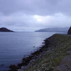 Die Fahrt führt durch den Magerøysund, der Enge zwischen der Insel Magerøya (deutsch: die karge Insel) und dem Festland. Und karg ist es hier tatsächlich!
