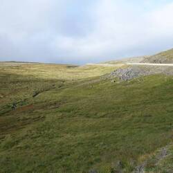 Damit beginnt der Abstieg. Der Sturm läßt im Windschatten merklich nach, es wird warm. Das Wandern wird leichter, auch die Wege sind hier trockener. So macht es Spaß! Eine Furtstelle ist noch eine Herausforderung, doch ich meistere sie schon routinierter. Die Stiefel lasse ich beim Queren an, obwohl es aussieht, als sei es zu tief. Sie bleiben trocken.