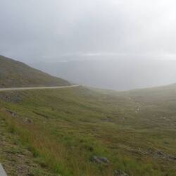 Nach 10 Kilometern ist der Anstieg erledigt, ich bin es auch. Der höchste Punkt ist erreicht und bietet einen wirklich sensationellen Blick auf den vor mir liegenden See Feren. Sagenhaft! Der Sturm braust hier oben mit unglaublicher Härte, doch er hat auch die dunklen Wolken mitgerissen. Der See glitzert und funkelt in prallem Sonnenlicht.