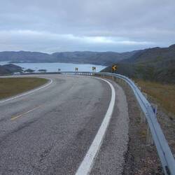 Vom Nordkap zurück geht es auf der E69, auf der vornehmlich PKW, Wohnmobile und Motorräder zum Nordkap düsen. Doch heute ist alles anders. Die Strecke ist für den Autoverkehr wegen eines Fahrradrennens drei Stunden lang gesperrt. Just in der Zeit, in der ich mich auf meinen Rückweg mache. 32km liegen vor mir, alle auf Asphalt.