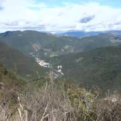 Es geht auch gleich zur Sache. 500 Höhenmeter sind schnell erreicht. Es ist eine wahre Schinderei hinauf. Der Pfad ist steil, steinig, lehmig und vom abfließenden Regenwasser nass. Ich bin heilfroh, hier nicht schon gestern oder - noch schlimmer - vorgestern im strömenden Regen gewesen zu sein. Da waren die jetzigen Rinnsale sicher noch rauschende Bäche. Es wäre vermutlich kein Durchkommen gewesen. Nun sind die Steine lediglich glitschig und der Lehmboden klebt an den Sohlen der Wanderstiefel. Unterm Strich aber finde ich, dass es ein schöner, wenn auch anspruchsvoller Weg ist, der mir gefällt. Nach 10 km mache ich an einem Gipfelkreuz eine Pause und genieße die schöne Aussicht. Im Tal ist der kleine Ort Sottivalle zu sehen. Wie gut, dass ich noch nicht weiß, dass ich gleich dort hinab muss. Das ist irgendwann geschafft, danach geht es natürlich wieder bergan. Nun bis auf 700m. Am Bric del Faro sage ich dem E1 "Chiao". Während er sich durch die Hügellandschaft des Ligurischen Apeninns windet, strebe ich den Bahnhof in Ronco S. zu. Kaum habe ich den E1 verlassen, wird der Weg besser. Suchen die E1-Macher immer die schlimmsten Pfade aus? Statt steiniger Hohlwege sind's nun meist schmale Schotterwege. Das ist viel angenehmer und vor allem schneller zu gehen. Zum Schluss kommt die Route noch einmal zur Sache. Steil geht es 500 Höhenmeter hinab nach Ronco Scrivia. Gut, dass ich hier nicht rauf muss!