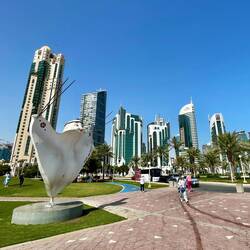 Heute steht ein TUI-Programm auf unserer Tagesliste: „High-Tea mit 360-Grad-Blick über Doha“. Um es vorweg zu schicken: Tee gab’s nicht im 47. Stock des höchsten Gebäudes von Doha.