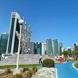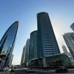 Im neuen Zentrum von Doha steigen wir aus der Metro Station West-Bay wieder ans Licht - und staunen. Wir sind mitten drin im zentralen Geschäftsviertel der Stadt.