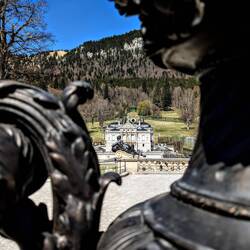 The next morning, we decided that I'd go to eat breakfast first, whilst Marv would be looking after Aluna. Or better: Aluna would be looking Marv taking a shower. Unfortunately, dogs aren't allowed to go to the restaurant in Ulm which I obviously find rather stupid - especially when she could just stay in her little backpack and nobody would even really notice her. Anyway, therefore I had a quick yet filling breakfast, before I took over from Marv. I wanted to have a stroll around the Old Town of Ulm again, as I remembered it to be quite lovely. However, Aluna did not want to go without Marv and I couldn't be bothered to drag her along with me, so we just made our way back to the hotel room and chilled until Marv came back from breakfast. We packed our bags, checked out and left Ulm behind us. The car got warm pretty quickly as the sun was giving her all. The mountains grew higher, the forest greener, and we arrived at our first stop: Schloss Linderhof.