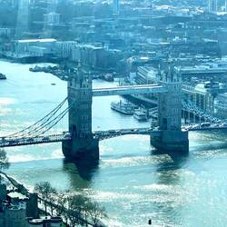 Ein letzter Spaziergang durch London, Tower Bridge mit (fast) blauem Himmel.