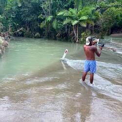 Da meine Schuhe nass sind, laufe ich jetzt nur noch mitLeer más