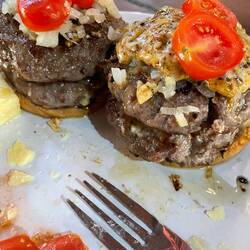 Danach bin ich in die Küche gegangen, um mir meine Burger zu machen, die ich gekauft habe. Zuerst habe ich eine Zwiebel kleingeschnitten und die dann angebraten. Bin kein Fan von Zwiebelschneiden.. da ich 4 Burgerpettis hatte und nur 2 Burgerbrötchen, habe ich einfach 2 für einen benutzt. Käsescheiben hatte ich auch nicht, dafür aber einen Käseblock, den ich mal vom Pullman mitgenommen hatte. Habe diesen einfach in Scheiben geschnitten und über die Petties drübergelegt. Hat nicht so gut funktioniert, wie ich mit das vorgestellt habe, aber hat trotzdem sehr gut geschmeckt.Leggi altro