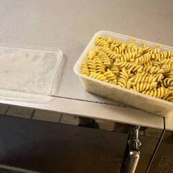 Wieder bei Dougies habe ich mir meine Nudeln in der Mikrowelle aufgewärmt, die ich mir mal aufbewahrt habe.Leggi altro