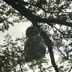 Auf dem Rückweg haben wir erst ein Haus gesehen, dass mich so heftig an den Wilden Westen erinnert hat und so schön war. 5 Minuten später haben wir einen soo gruseligen Stoff-Koala, oder was das auch immer sein soll, an einem Baum hängen sehen. Ich habe mir nur vorgestellt, wie ich mich fühlen würde, wenn es dunkel wäre und ich den am Baum hängen sehen würde. Heilige Scheiße. (Soomt mal in dem Bild rein..)